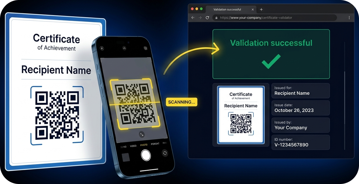A franchisee, auditor, or operations manager can click a link or scan a QR Code and immediately confirm whether a credential is valid, who it belongs to, and when it was issued or when it expires.