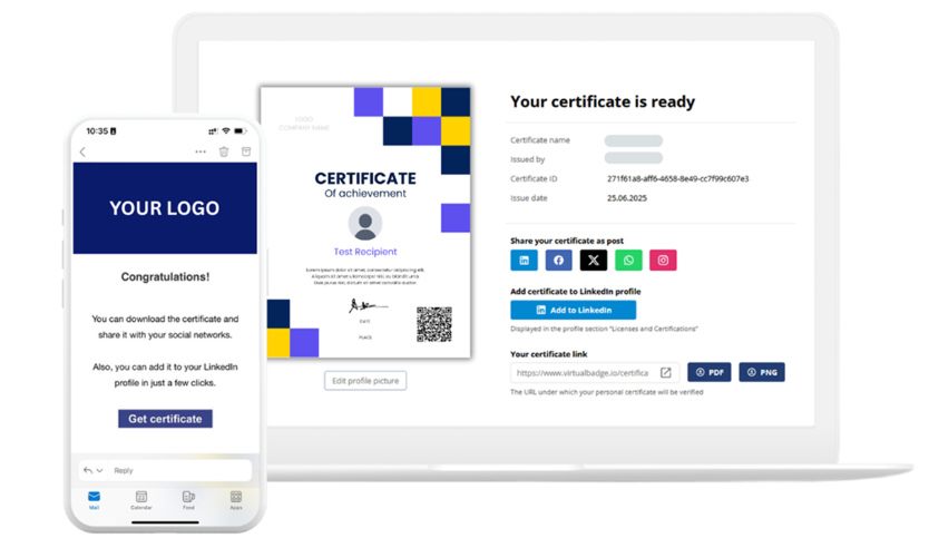 Use Virtualbadge.io to design and send digital certificates that create trust - in less than 10 minutes.