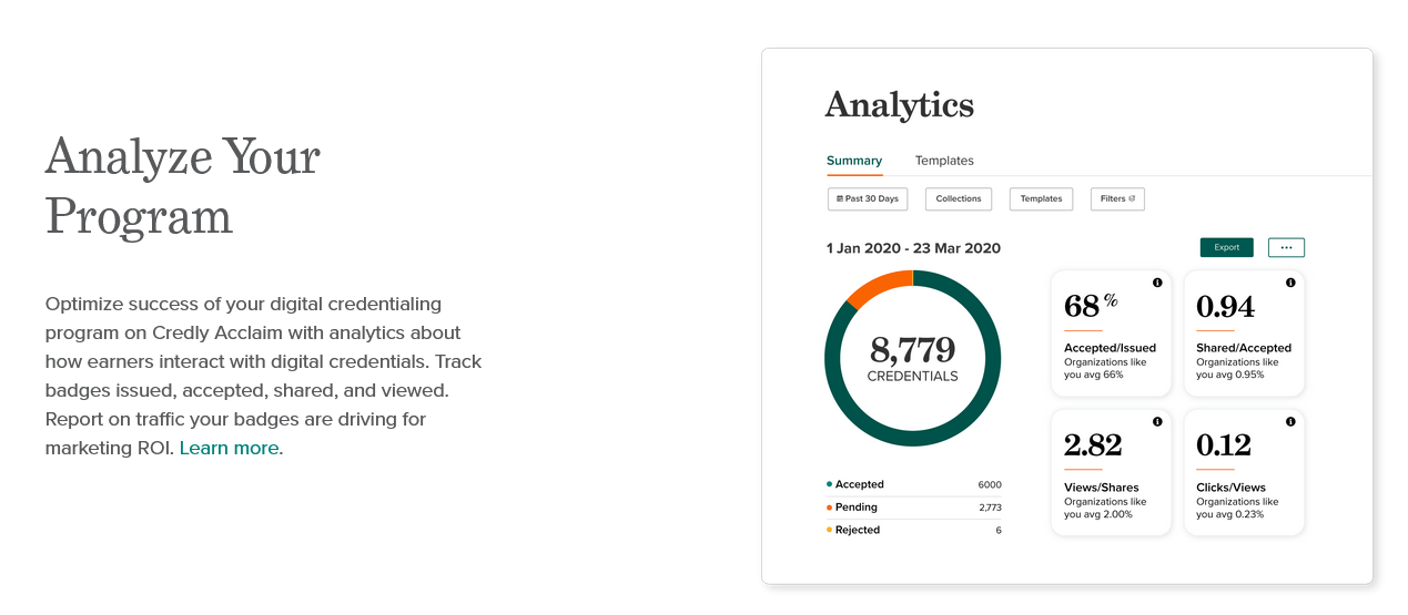 Virtualbadge.io platform tracks shared certificates and provides you with data insights.