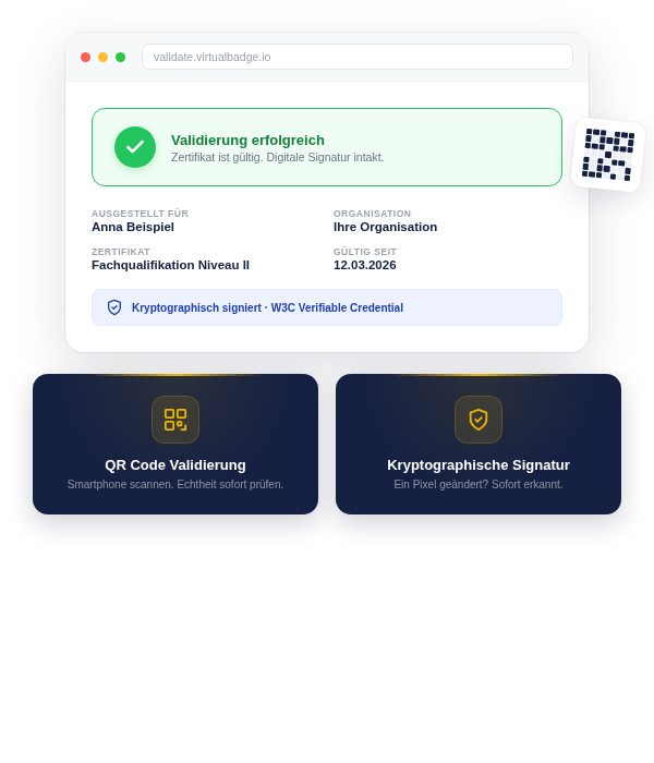 Virtualbadge macht den Einstieg in digitale Zertifikate so einfach wie möglich. Erstellen Sie professionelle Zertifikatsvorlagen mit Ihrem Branding, laden Sie Teilnehmerdaten per CSV hoch und versenden Sie verifizierbare Credentials in Minuten.